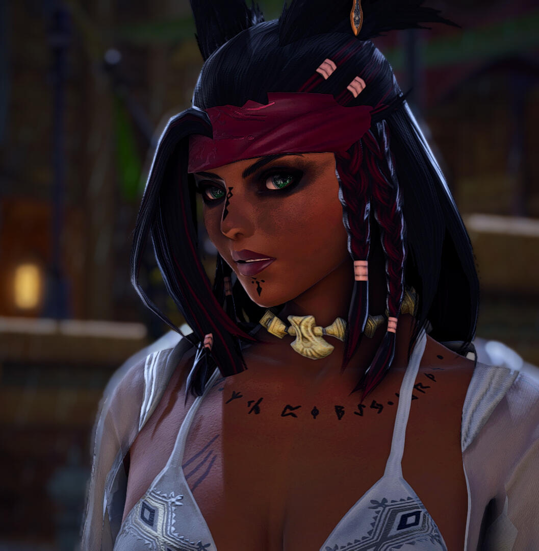 Novana was born in the eastern parts of the Gulmore Jungle. She was born sick, so her parents prayed to the goddess Nymeyia, who responded by implanting a gem into Novana's forehead that gave her life. After growing up with over bearing parents, she decided to leave her village and explore the world, which unfortunately meant she was no longer allowed back home. Having such a strict upbringing, she took on the art of the fist, turning her body into a weapon. After a bunch of adventures, she now likes to spend her time with friends and having fun.